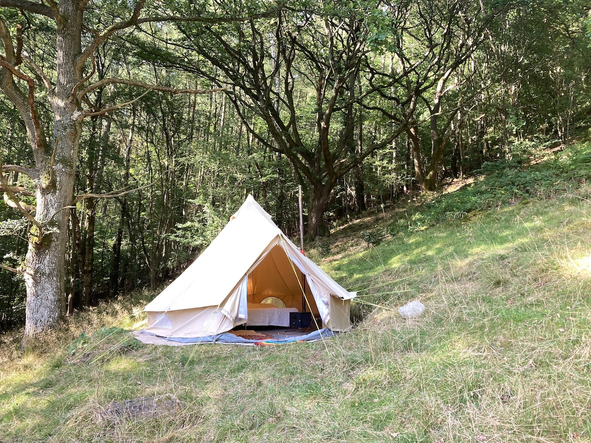 Our bell tent with super-king bed & luxurious bedding is perfectly located amidst wonderful countryside. There are many activities, places to see & events locally. Walks are directly from the tent. The local pub, serving home made food & local ales, is a 3-minute walk away. We provide an induction hob, fridge/freezer, BBQ, microwave, kettle & toaster. We can prepare 2 self-inflating mattresses for children if needed. The tent is on its own private area of land for you to use exclusively.