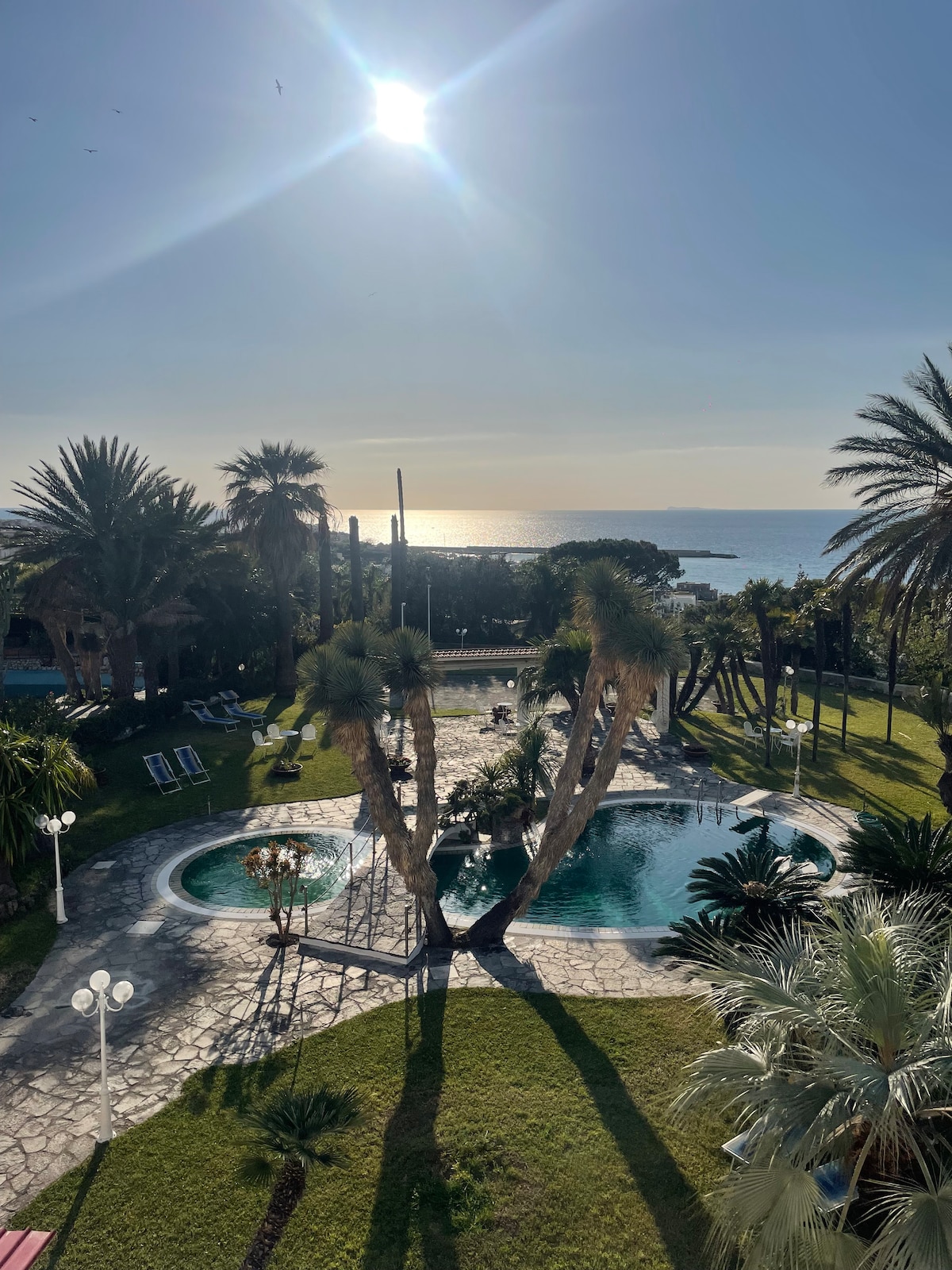 Una piscina termale, una sauna naturale. Una villa esclusiva immersa in un rigoglioso giardino, sospesa tra cielo e mare. Nell'incanto della Baia di Citara una delle più suggestive dell'isola perché esposta interamente ad Ovest: tramonti da sogno col sole rosso che si va spegnendo nel mare aperto dietro l'isola di Ventotene, unico ostacolo allo sguardo spalancato sull'orizzonte immenso. Sei camere da letto doppie, fresche, panoramiche ognuna con suo bagno, ventilatori e mini frigo.