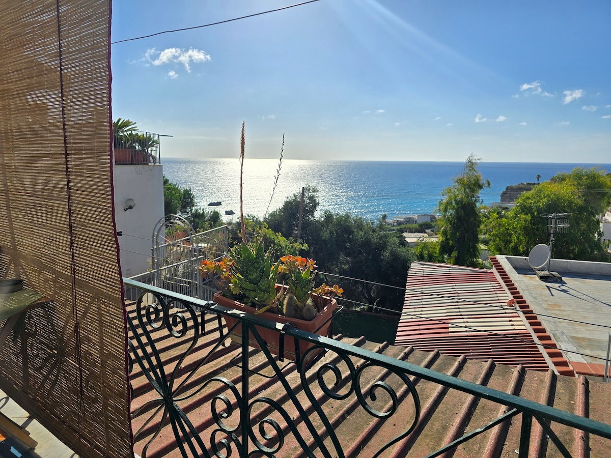 L'appartamento composto da camera da letto, bagno, soggiorno con angolo cottura e divano letto, terrazzo si affaccia su un ampio giardino con vista privilegiata sull'incantevole baia di Citara, dove le sfumature suggestive dei tramonti foriani, regalano ogni giorno emozioni contrastanti ed intense. L'appartamento dista circa 300 m dalle spiaggie di Citara, Cava dell'Isola e dal Parco Termale "Giardini Poseidon ". Il centro storico dista circa 2 km.