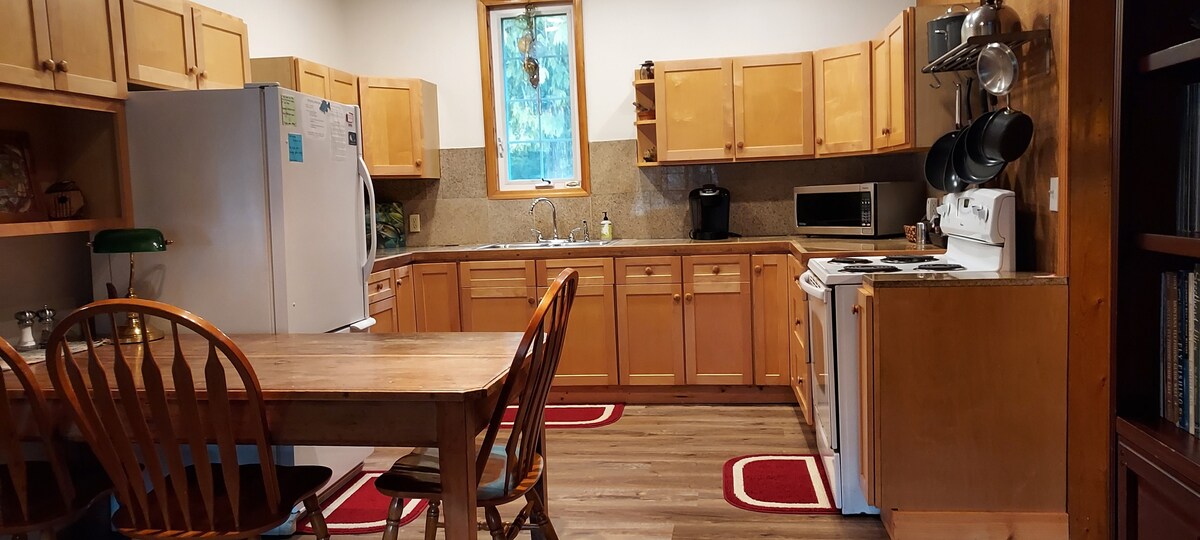Shadynook Cottages #4 is the main house. It has 2 bedrooms (one queen, one double) and 1 bathroom. It also has a queen sofa bed in the living room. It has a fully stocked kitchen, large living room spaces, full dining room, and sleeping for 6. It is located 2 blocks from downtown Forks and is close to city amenities such as restaurants and shopping and a short driving distance from hiking, beach combing, and exploring. This home has been largely updated and has all new flooring throughout.