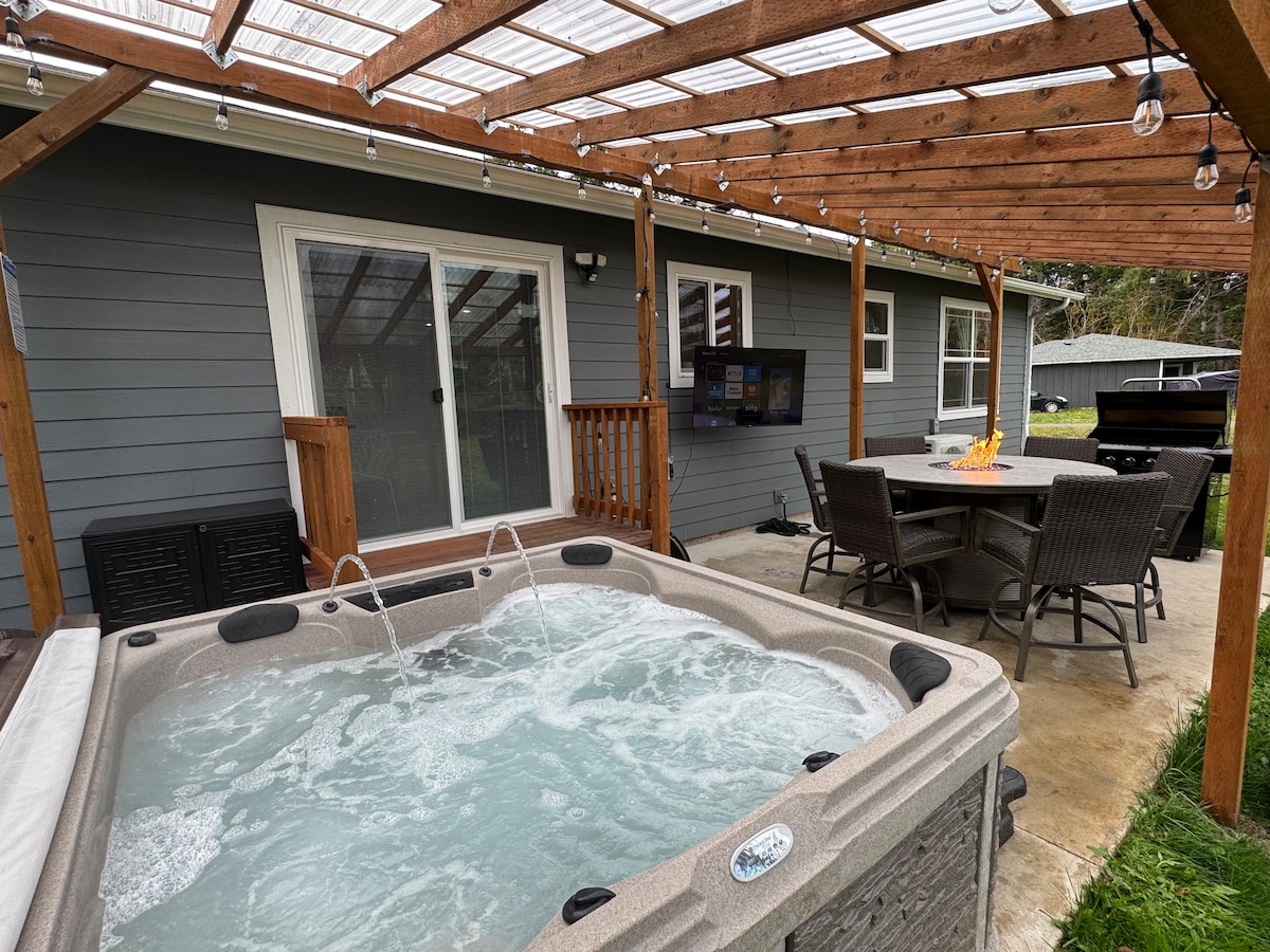This modern rental is ideal for families and friends visiting the Olympic Peninsula! It includes a year-round hot tub, 4-person sauna, unique game room garage, perfect kitchen, and waffle bar complete with Baby Yoda chocolate chip waffles :) Forks is the perfect basecamp for exploring the Olympic Peninsula and this home was designed to extend the experience. So explore the rainforests and beaches by day - then relax, eat-in, and play all evening!