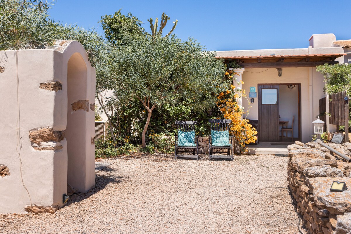 Casita situada en La Mola, en el campo, zona tranquila, de fácil acceso. Cerca de la Iglesia del Pilar. A 500 metros encuentran todos los servicios: parada de autobús, bares, restaurantes, tiendas y supermercado. Las mejores playas de la isla, Playa de Migjorn, a tan solo 7 minutos en coche o moto.