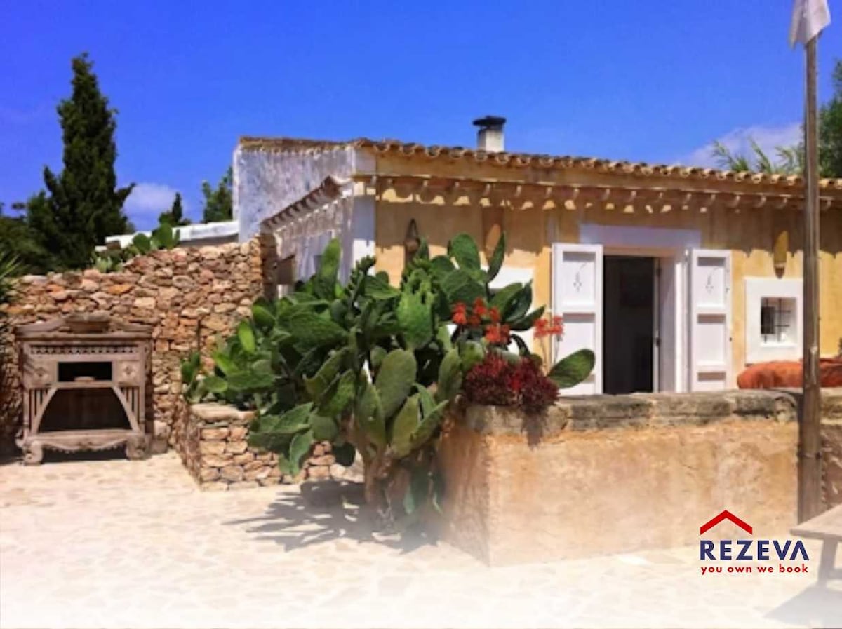 ET 6652 Esta hermosa villa de 300 m2 que se extiende majestuosamente sobre 15,000 m2 de terreno cercado. A tan solo 5 mins de la playa de Cala Saona. Con capacidad para 10 pax, alberga 8 habs. dobles y 5,5 baños, tres de ellos en suite, 6 con aire acondicionado y acceso directo al exterior. El corazón es su amplio salón, que conecta con la piscina y el jardín. Las 2 cocinas, completamente equipadas. Cuenta con una piscina, hamacas y camas balinesas, además de dos grandes porches.