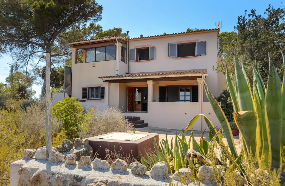Casa Mayo es una preciosa villa ubicada entre Sant Francesc y Cala Saona. La casa dispone de 3 habitaciones, una con cama doble y las otras dos con camas individuales, cocina y dos baños. La casa cuenta con una zona exterior con piscina, barbacoa y porche donde disfrutar de agradables cenas. Ideal para familias y grupos de amigos que desean que el alojamiento sea una experiencia más de las que gozar en la isla.