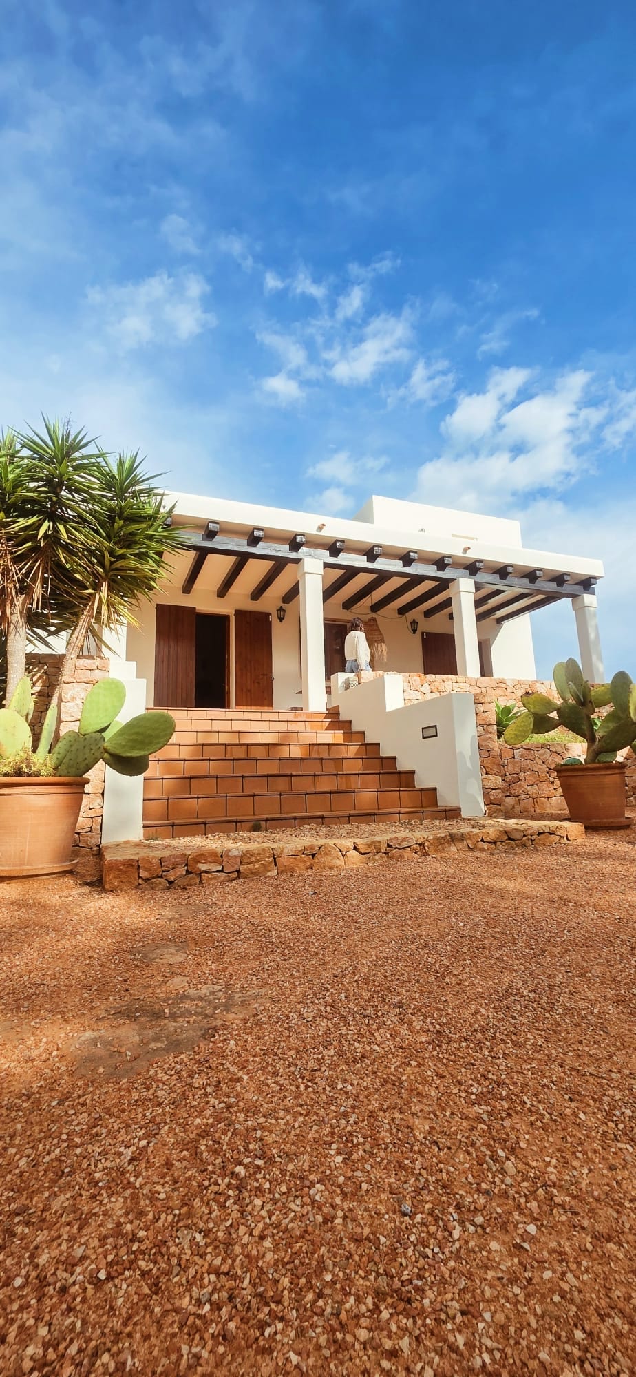 A luxurious villa recently renovated situated in a pinewood forest 300 meters to the beach. Perfect to relax and enjoy Formentera in a quiet neighbourhood. The villa has to parts: the main part includes 1 double room, living room, bathroom and fully equipped kitchen plus 2 terraces. The suite apart includes 1 bedroom up to 3 individual beds and bathroom and a terrace.