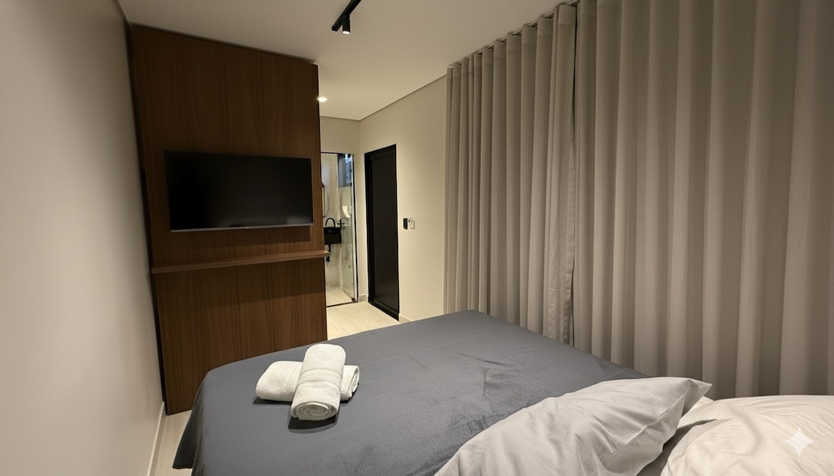 Nosso apartamento foi pensado nos mínimos detalhes para oferecer uma experiência única, aconchegante e inesquecível. Recém-construído, ele combina conforto, praticidade e muito charme em um espaço moderno e acolhedor. Conta com uma cama super confortável, ar-condicionado, Wi-Fi e uma cozinha equipada. A sala de estar é aconchegante, com TV smart e um sofá perfeito. Será um prazer receber você. Nosso espaço está preparado para tornar sua viagem mais leve, agradável e especial.