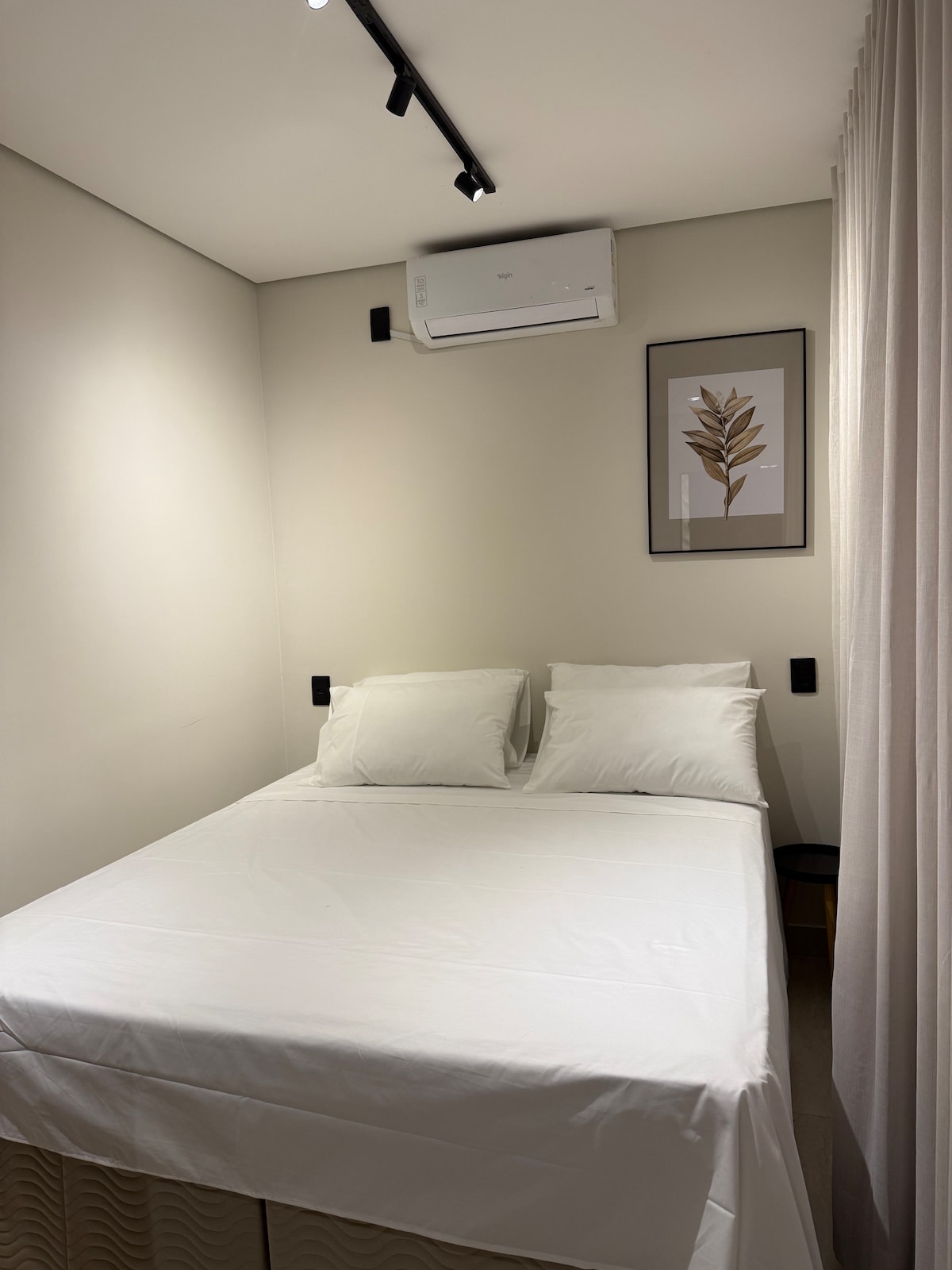 Apartamento mobiliado, moderno e aconchegante, ideal para estadias temporárias de até 6 meses. Possui quarto com ar-condicionado, cama de casal Ortobom (1,98 m) e guarda-roupa, além de um segundo quarto adaptado como sala de TV com sofá cama retrátil confortável. Cozinha completa com geladeira, micro-ondas, airfryer e lava e seca Samsung. Conta ainda com sala de jantar, sacada envidraçada e vaga de garagem coberta. Perfeito para conforto e praticidade.