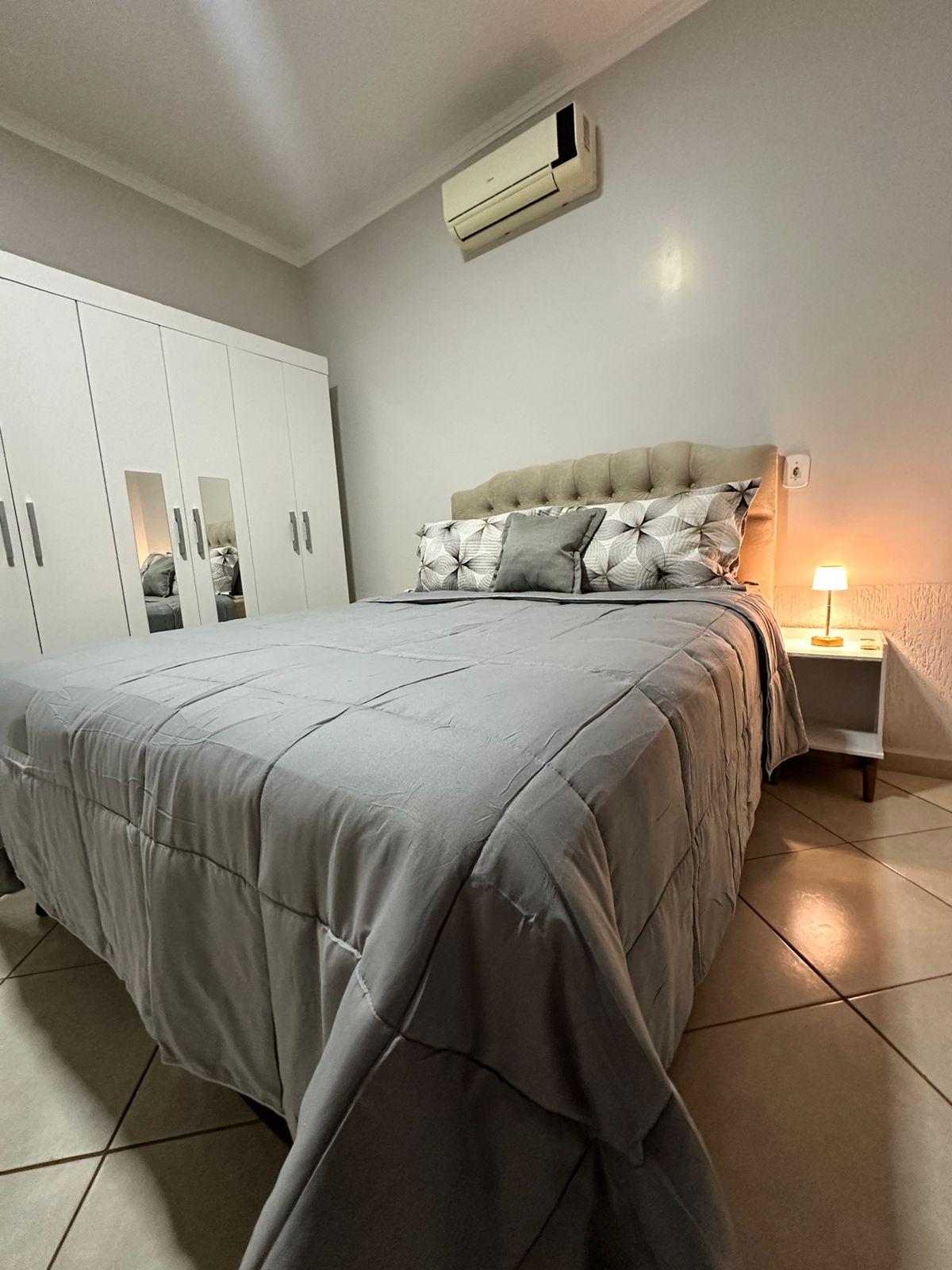 Apto203 Conforto e Localização em Formosa-GO Aconchegante, funcional e muito bem localizado! Nosso apê fica a 500m da UNIRV, IESGO, Hospital Regional, SAMU, Fórum, OAB, Supermercados Dia a Dia e Atacadão, além do Restaurante Mediterranium Gastronomia Internacional Ideal para trabalho, estudo ou descanso, o apartamento é completo e recém-decorado. São 2 quartos (1 suíte com ar-condicionado), 2 banheiros, sala com sofá-cama e TV, cozinha equipada e Wi-Fi rápido. Acomoda até 4 pessoas com conforto.