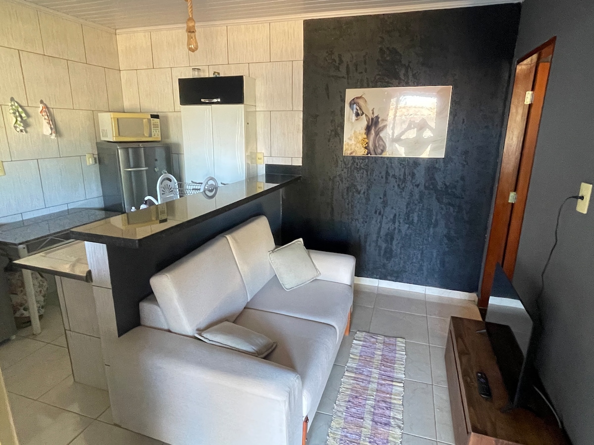 Nosso apartamento foi pensado nos mínimos detalhes para oferecer uma experiência única, aconchegante e inesquecível. Recém-construído, ele combina conforto, praticidade e muito charme em um espaço moderno e acolhedor. Conta com uma cama super confortável, ar-condicionado, Wi-Fi e uma cozinha equipada. A sala de estar é aconchegante, com TV smart e um sofá perfeito. Será um prazer receber você. Nosso espaço está preparado para tornar sua viagem mais leve, agradável e especial.