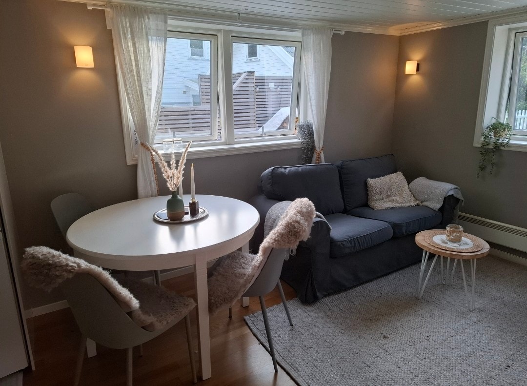 This is a beautiful apartment with an amazing view of the Oslo Fjord. You will be able to sunbathe in our lush garden and take a swim in the ocean from our boat dockage. The living room is quite large and has an open kitchen space. The private veranda is also perfect for enjoying the sun and the view. The apartment has two bedrooms and two bathrooms, one main bathroom and one WC with a washbasin.