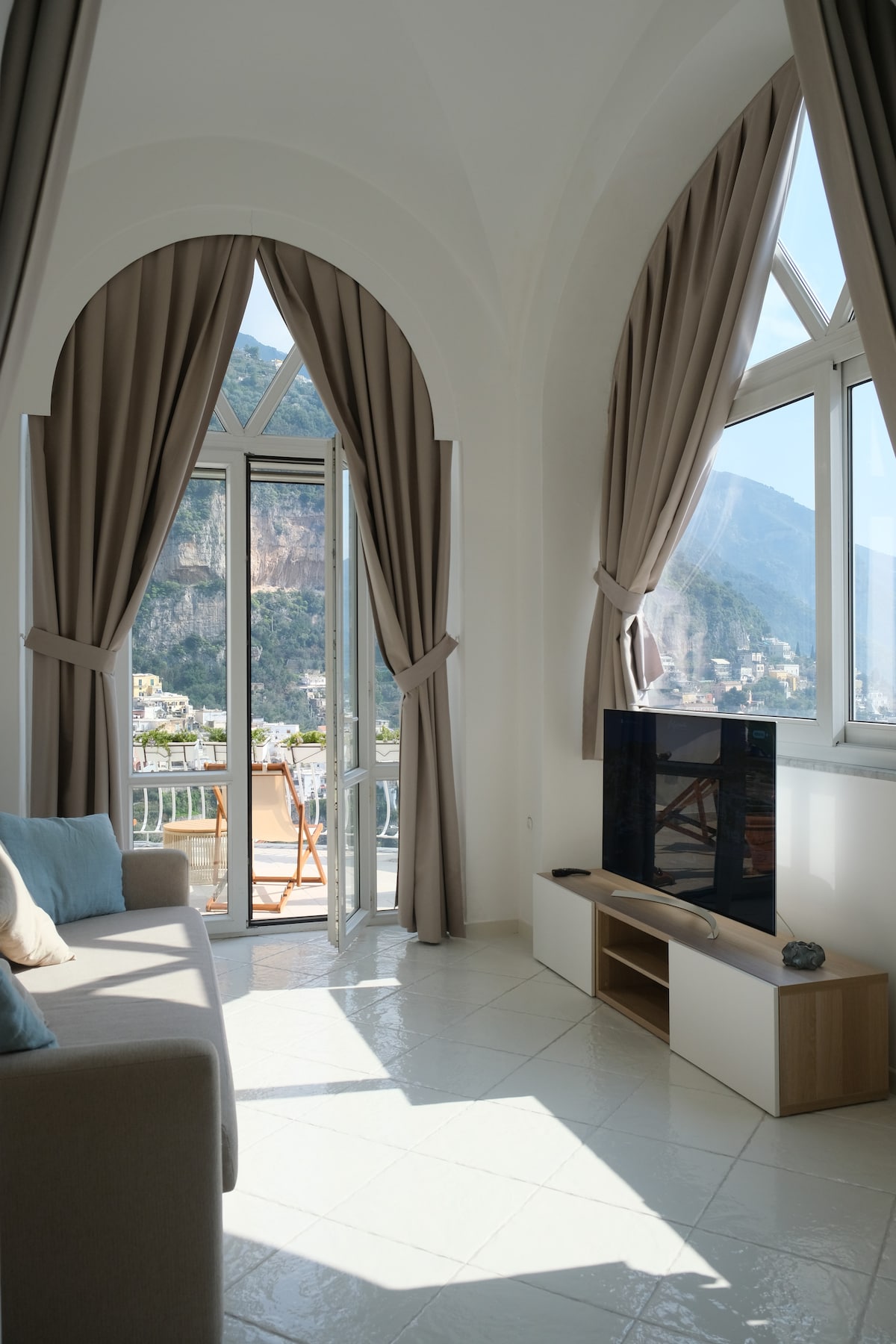 波西塔诺明亮的公寓,露台景观非常好