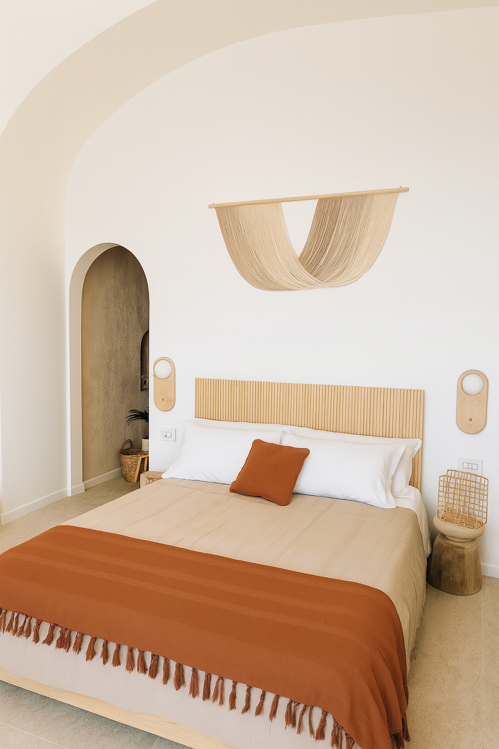 Arcu, an essential retreat suspended between sky and sea, in the authentic heart of Nocelle — a panoramic village above Positano. A minimal open space, born from an ancient dwelling and overlooking the Amalfi Coast and Capri, featuring a private wellness area with tub and emotional shower. Garden with solarium and outdoor shower. Here, time slows and the raw beauty of matter speaks.