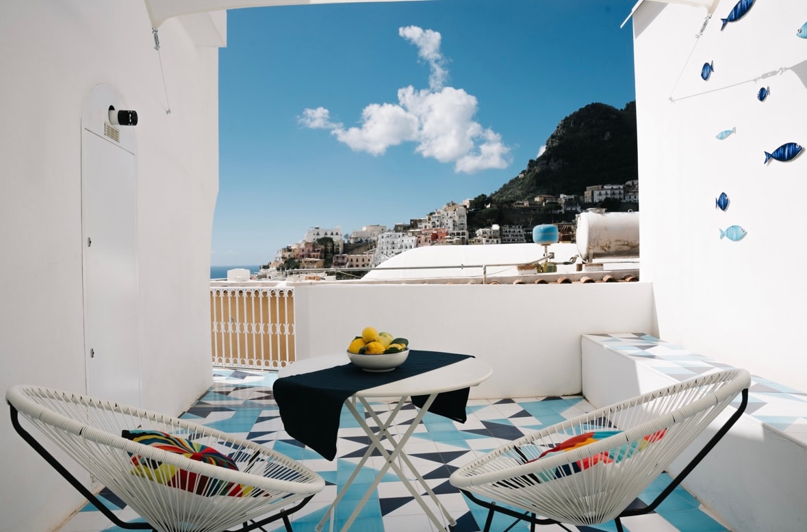Mareluna is a uniquely charming Amalfi Coast cottage that blends 18th-century historical features with modern luxuries. It offers stunning panoramic sea views and elegant interiors with details like chestnut beams, traditional tiles, and modern amenities like aircon and smart tv. Unique touches like refurbished bathrooms with exposed stone and a 200-year-old sink add character. The property also features a terrace and patio, ideal for enjoying the breathtaking coastal scenery and outdoor dining