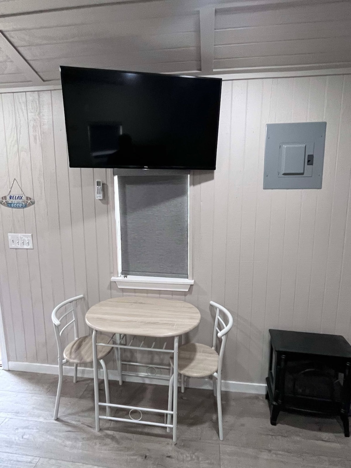 • Comfy bed 2 soft & 2 firm pillows • High speed Internet • Big tv Netflix, Hulu and Disney+ • Washer & dryer • Sauna, pool, fire pit • Close to great restaurants & Walmart. • Games Pool is not heated and too cold to swim October through April but the Sauna is open year-round. A tiny house experience with lots of full-size features including a big refrigerator, washer, dryer, high speed Internet, sauna and shared saltwater pool. There is a second Airbnb on the other side of the property.