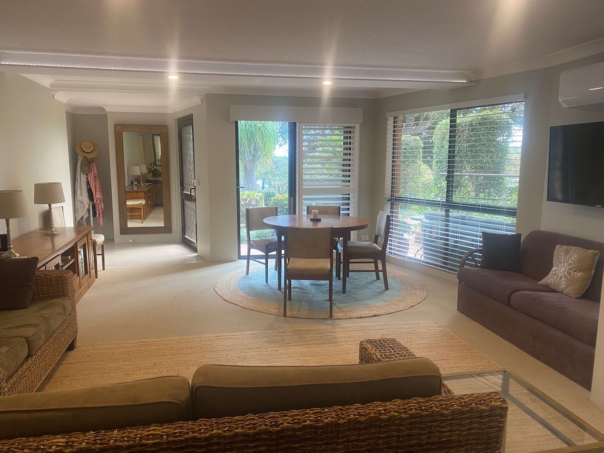 Our place is close to the beach, restaurants and dining. You’ll love our place because of outdoor open fire place / BBQ, Pool within the complex, the outdoor space, short walk to 2 beautiful beaches - surfing / fishing! Our place is good for couples, solo adventurers, and families (with kids). Remember to pack your own linen including bed sheets, pillow cases, towels, tea towel. Everything else is provided in the unit