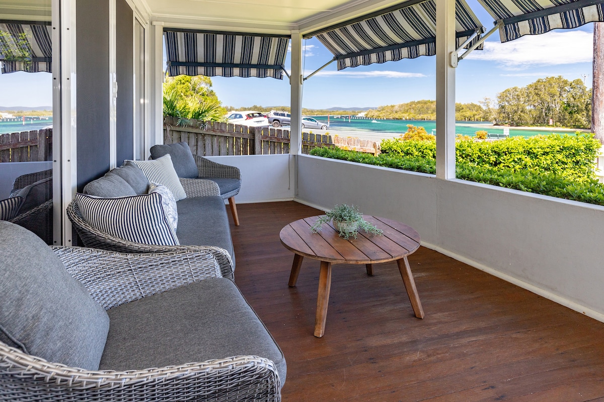 Bring your boat, fishing rods, pack the surfboards and swim, this place sits on the shores of Wallis Lake. A beautiful original 3 bedroom house situated on Wallis Lake, that has been recently renovated. The Lakeside house features a large front deck to take in the serene water views, fully equipped new kitchen, washing machine, balcony + more. The property is 800m to the bridge, 600m to Tuncurry boat ramp and 1.5 km to Tuncurry beach. A perfect family getaway for fishing, surfing or bike riding.