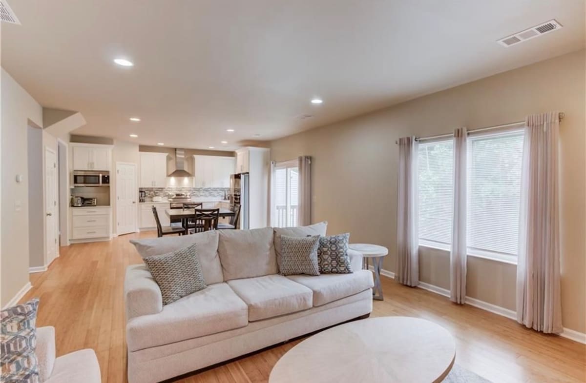 Welcome to Hanover Retreat, a modern 3BR/2.5BA home in Buford, GA near Mall of Georgia and Lake Lanier. Sleeps 8 with fast Wi-Fi, smart TVs, game room, and a fully stocked kitchen. Perfect for families, groups, and business travelers. Located in a quiet neighborhood close to shopping, dining, and top attractions. Enjoy comfort, convenience, and a relaxing stay. Book your Buford getaway today.