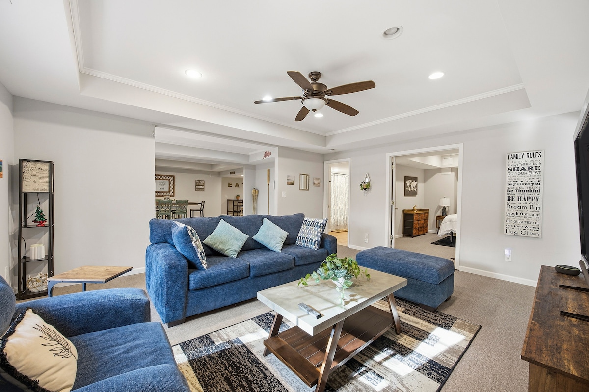 Enjoy the walking trails at Little Ridge Park taking in the breathtaking sunset on Lake Lanier in the neighborhood, then coming back to relax on the covered back deck surrounded with foliage and nature sounds. Convenient to downtown Cumming and minutes away from the hospital. This ranch style home has 3 bedrooms with 3 queen beds that you can choose from to rest in, and two of the most comfortable couches you will ever sit in. Long term stay discounts!