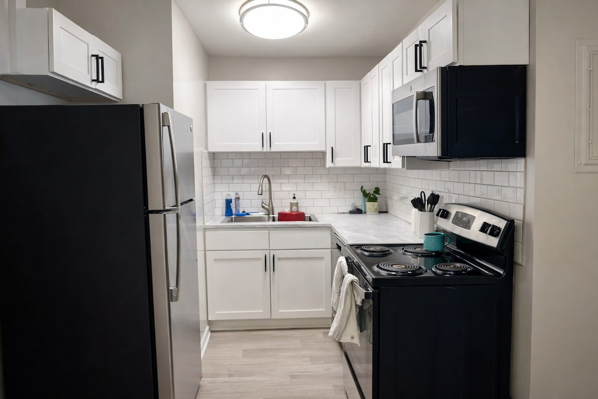 Entire apartment in the heart of Winston Salem equipped with everything you need for a comfortable stay. *740 SqFt 1BR/1B *King Beds & Full Pullout in Living Room *2 Smart TVs (55" & 43") *Lightening fast Wi-Fi *Front Load Washer + Dryer Inside Unit *Free On-Site Parking *Pool & Gym *Pet Friendly (Fee $100) *Age Requirement 25+ *ID + Screening Required *A selfie holding your license is required for Verification *100% Smoke-Free Community