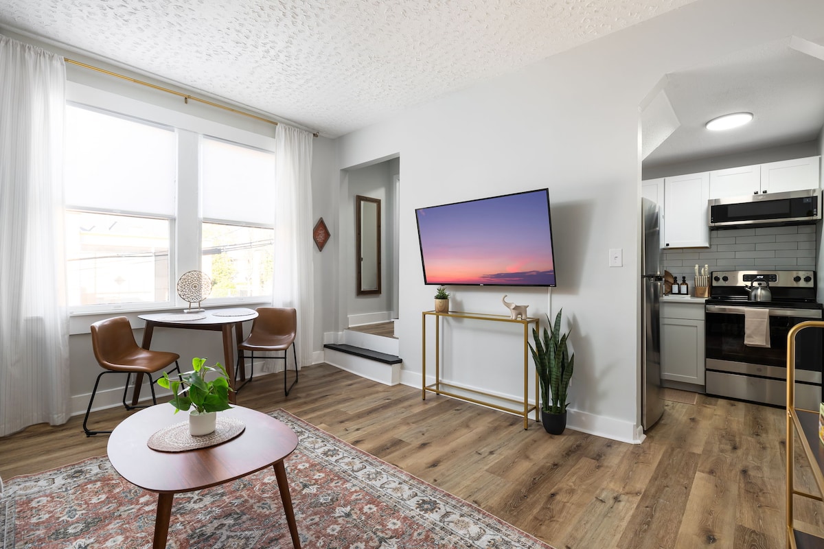 Your downtown getaway awaits at the SUMMIT @ West End! Walk to endless restaurants, bars, shops & entertainment throughout beautiful, downtown Winston! Relax in our fully renovated space, designed with comfort & creativity in mind. Enjoy on-site parking & laundry, deluxe coffee/tea station, premium KING mattress & linens, smart TVs in living room & bedroom, high-speed Wi-Fi & more! 3 min to Millennium Center 5 min to Wake Forest Baptist Health 7 min to LJVM 8 min to Novant Health 8 min to WFU