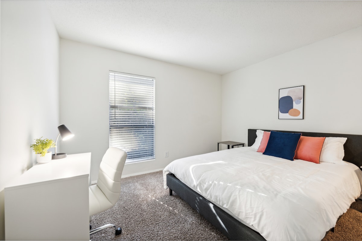 Experience comfort near Winston-Salem's prestigious hospitals and attractions in our 1-bedroom apartment, just minutes away. Enjoy a cozy living area, fully equipped kitchen, queen bed with premium linens, high-speed WiFi, smart TV (streaming services only), in-unit washer/dryer, and private patio. Onsite amenities include a fitness center, pool, tennis court, and dog park. Close to dining, coffee shops (0.4 mi to Starbucks), parks, and shopping—perfect for medical assignments or extended stays.