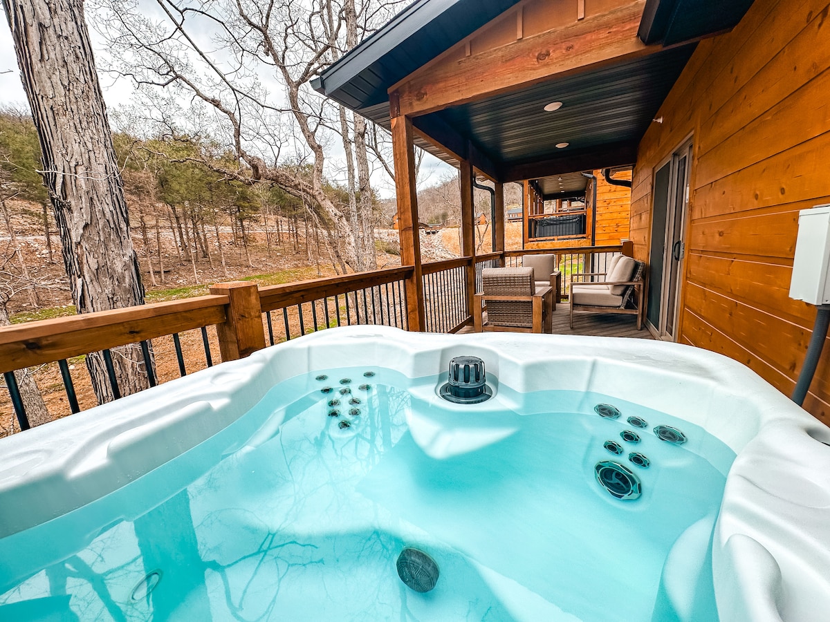 Imagine relaxing on your deck overlooking Lake Taneycomo and the Ozark Mountains in your PRIVATE HOT TUB, surrounded by nature. Your family will love watching the fish jump and the eagles soar across the water. Explore the lake in our kayaks or fish off the dock. Challenge the kids to a game of cornhole, and relax at the community pool. End your day around the lake-side fire pit, telling stories and making s'mores. This will be a Branson vacation everyone will remember!