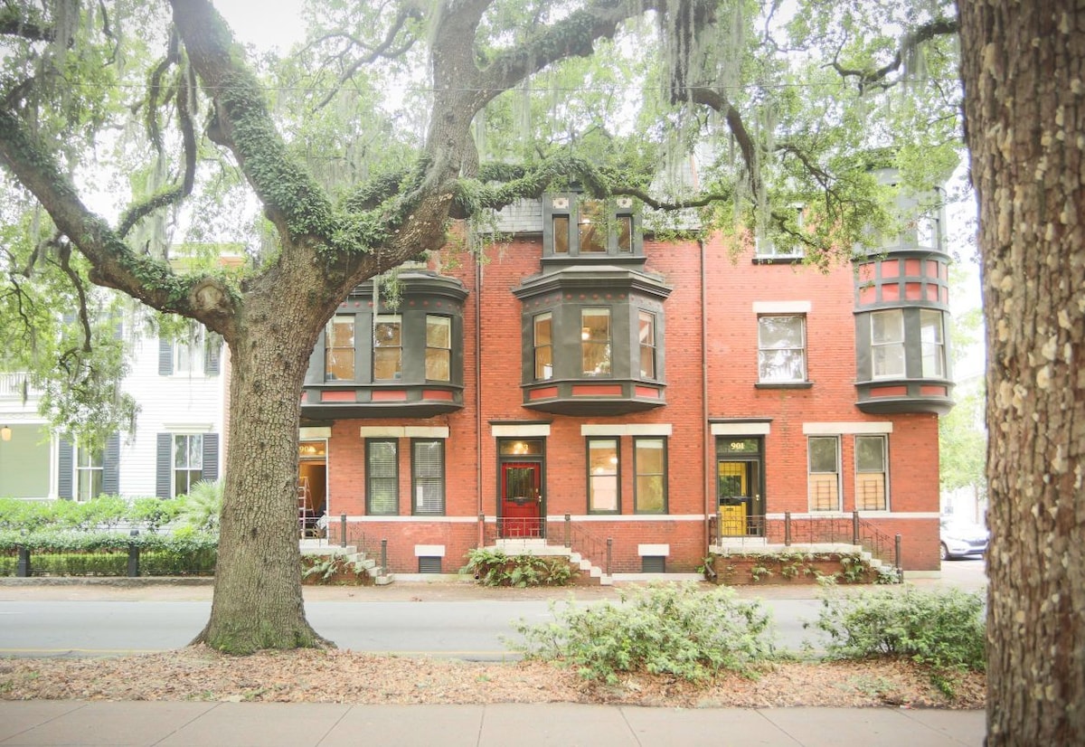 650 steps to the 💜 of Forsyth Park. Enjoy charm with a mix of artsy and Victorian. King primary suite. Bright 2-story Victorian apartment is classic Savannah, right across from Forsyth Park in a quiet, upscale neighborhood of grand mansions and restaurants—just minutes to the River. Walk everywhere! balcony for outdoor dining. 15-ft ceilings, heart pine floors, rustic character, charming historic stair creaks. Not for guests with mobility issues If you want real Savannah, you’ve found her!