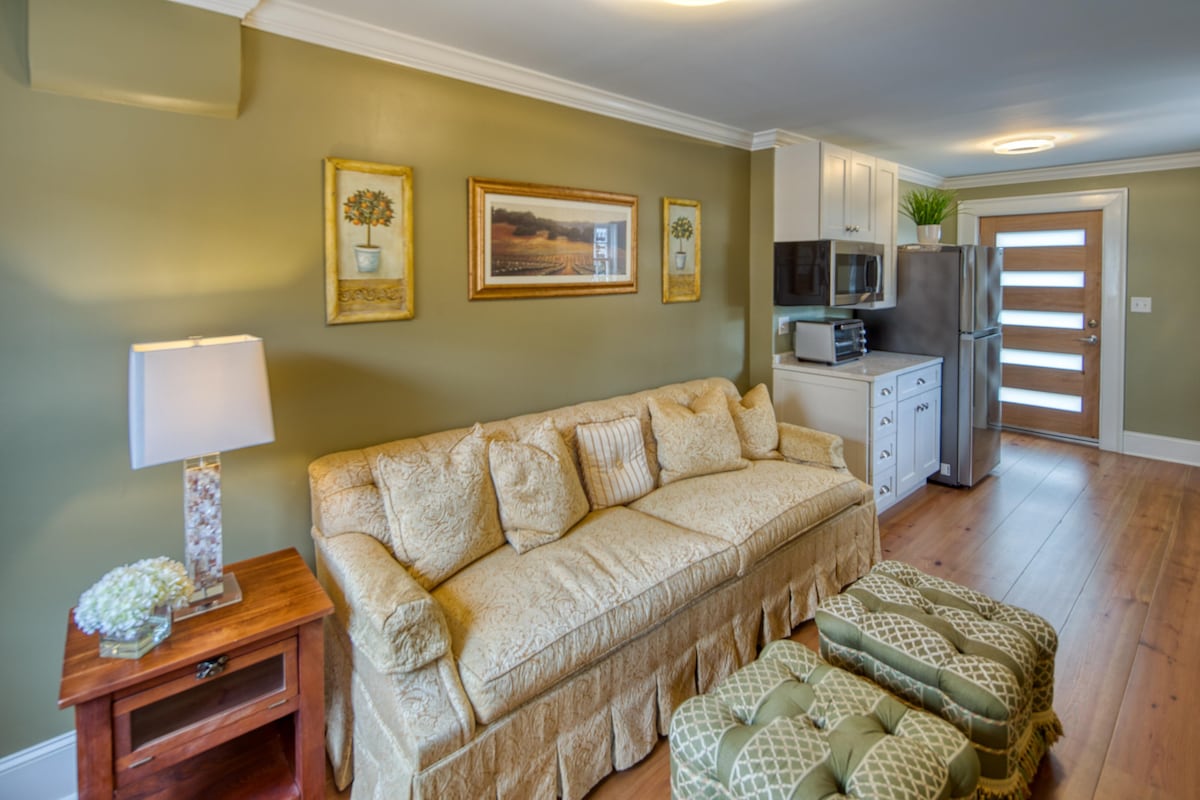 On Forsyth Park NO STAIRS FREE PRIVATE OFF STREET PARKING! Stay in Savannah’s best location—in a courtyard! This upscale neighborhood is just steps from everything. Walk to the Forsyth Park fountain in 2 min 20 mins to the river, and 5 star restaurants nearby! This romantic apartment is on the garden level of an 1890s Victorian carriage house. It features a kitchen, a comfy new queen bed, and a sofa mat for a third guest ( 2nd bed ) The studio is and compact small perfect for a Savannah