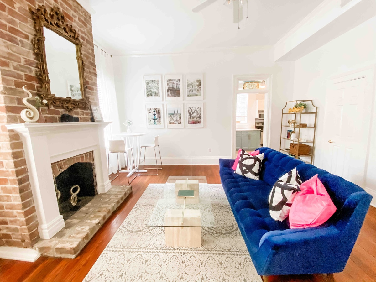 Book this place if you really want it ALL! Clean lines & modern updates, along with DROOL-WORTHY, 100+ year-old, heart pine floors & exposed brick fireplaces. Our 1887 Victorian has been lovingly restored & infused with vibrant local art, haint blue-green ceilings, and a fun sense of style that helps even the weariest travelers get excited about exploring our AMAZING city. This INCREDIBLE upstairs haven is a stone's throw from FAB Forsyth Park in the heart of the Victorian district. SVR-01068