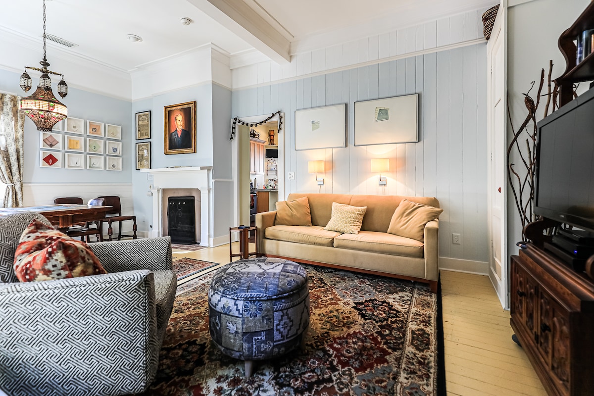 Jingle Bells Square Cottage Welcome to the heart of Savannah’s Historic District. Behind the main house sits our cozy 1885 carriage house, just 50 yards from beautiful Troup Square. Thoughtfully renovated to keep its historic charm, it’s a quiet, welcoming space—complete with a working fireplace to make you feel right at home! *Registered with the City of Savannah SVR-00032* Minimum Rental Age: 25
