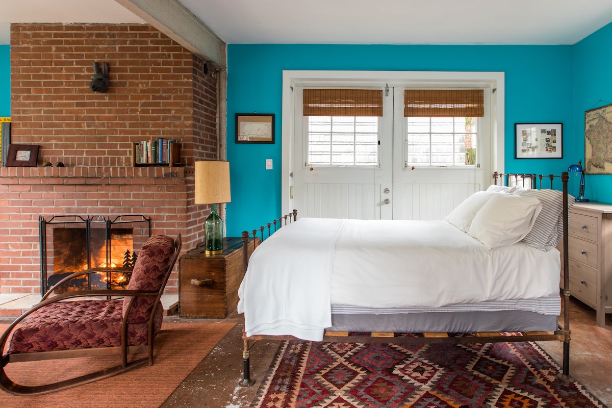 Nestled in Savannah’s historic Streetcar District, The Garden Studio at Half Moon House is a private retreat within the city, blending funky, mid-century modern style with a rustic cabin feel. This open-concept space features a kitchenette w/ essentials, an extra-long clawfoot tub w/ hand shower, and floor-to-ceiling windows overlooking a peaceful garden. Set in the historic carriage house behind a 1914 colonial revival home, it’s just minutes from Forsyth Park, Starland, and top restaurants.