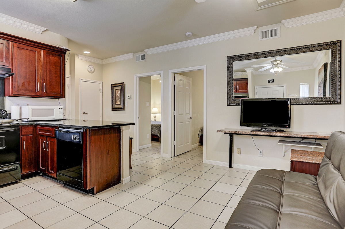 安全,舒适,干净的两卧室,一楼套房, 中国城, 带厨房.步行到超市和餐馆,24 小时闸门和停车场