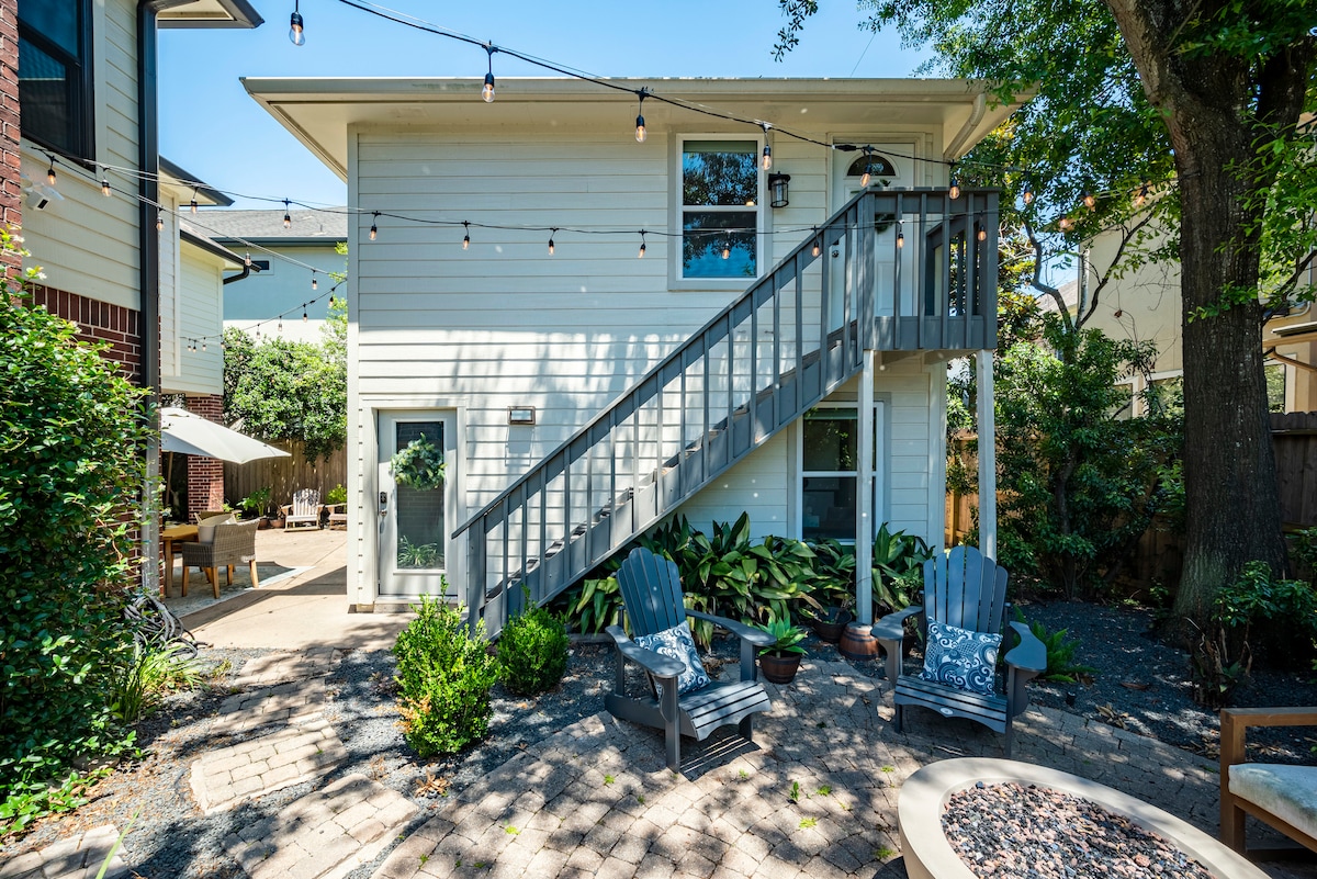 Welcome to this cozy& stylish upper-level guesthouse! Designed with comfort in mind, this compact 400sqft space features hotel-quality King bed with ensuite bathroom, a full kitchen, living room &laundry unit for your convenient stay. Located in lovely neighborhood with great central location: TX Med Center, NRG stadium,Rice Village,Galleria,Museum District, Upper Kirby,Montrose,River Oaks,Midtown/Downtown Free curbside street parking Shared outdoor space with lounge chairs in a cute garden.