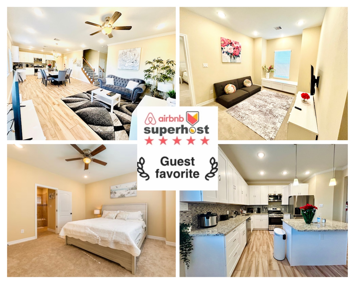 Experience the difference design can make in our custom home we designed and built for our guests! 1800sf, 3bed, 2bath, sleeps 14! In the heart of Chinatown, immediate access to Westpark Toll & Beltway 8. Baby/child/pet friendly! All essentials/amenities included: fully equipped kitchen, 2 kings, TVs in all rooms, premium bedding/linens, complimentary snacks/beverages, all toiletries, dedicated work space, washer dryer, USB ports throughout, ultra fast wifi, and Netflix, Hulu, Disney+, ESPN+!