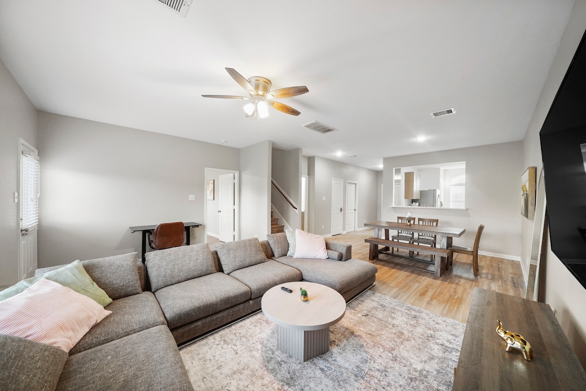 Experience the difference design can make in our custom home we designed and built for our guests! 1800sf, 3bed, 2bath, sleeps 14! In the heart of Chinatown, immediate access to Westpark Toll & Beltway 8. Baby/child/pet friendly! All essentials/amenities included: fully equipped kitchen, 2 kings, TVs in all rooms, premium bedding/linens, complimentary snacks/beverages, all toiletries, dedicated work space, washer dryer, USB ports throughout, ultra fast wifi, and Netflix, Hulu, Disney+, ESPN+!
