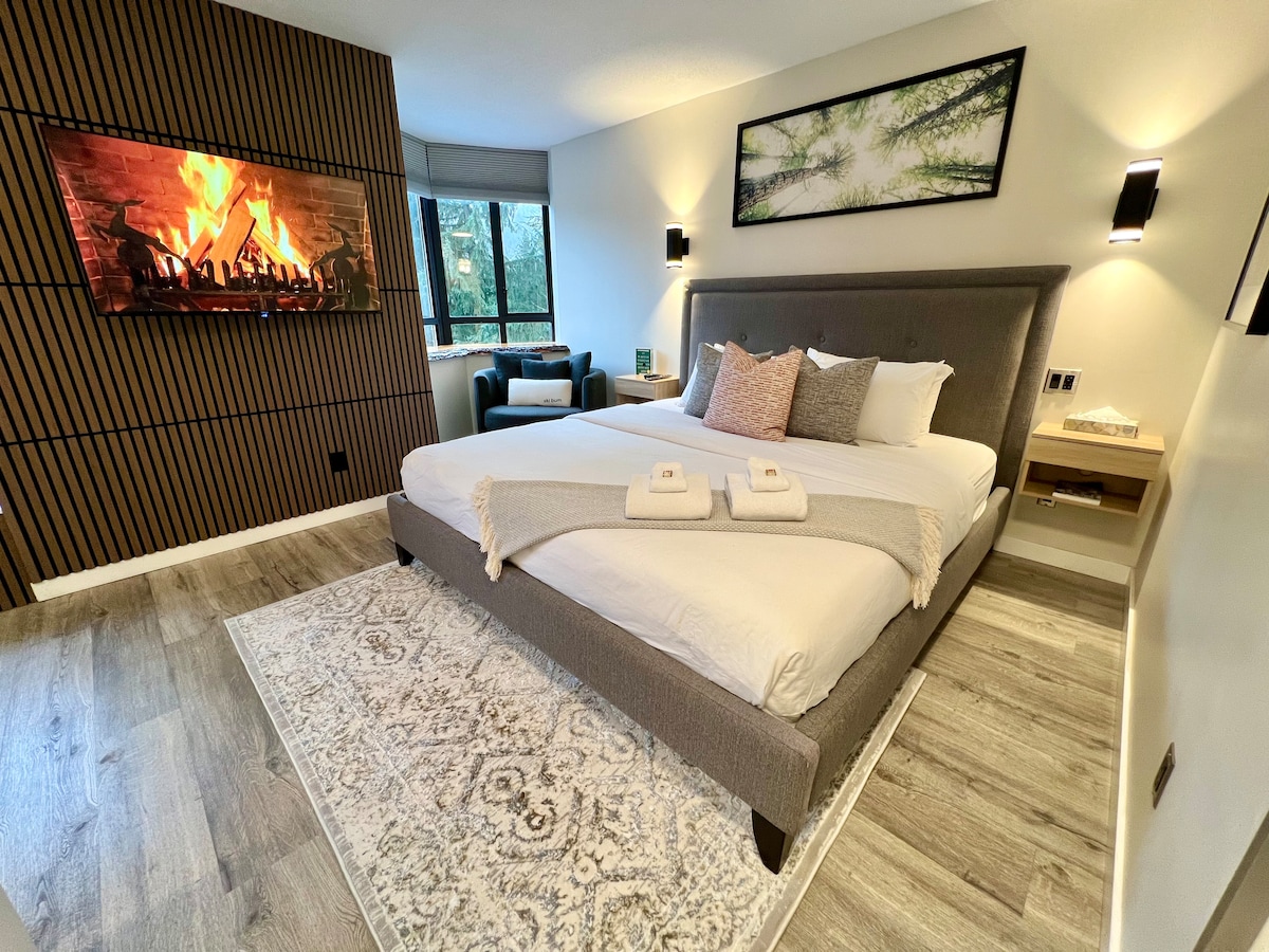 Note: HOT TUB closure info⬇️ **STROLL SIDE STUDIO**on the Whistler Village Stroll** -FREE parking! -King bed + Queen sofa bed -Air conditioning -Hot tub + GYM -In-suite laundry -Fully equipped kitchen -Balcony overlooking the iconic Village Stroll! **Hot Tub is being renovated and will be CLOSED from until mid January 2026 **Gym is being renovated and will be CLOSED from until mid January 2026