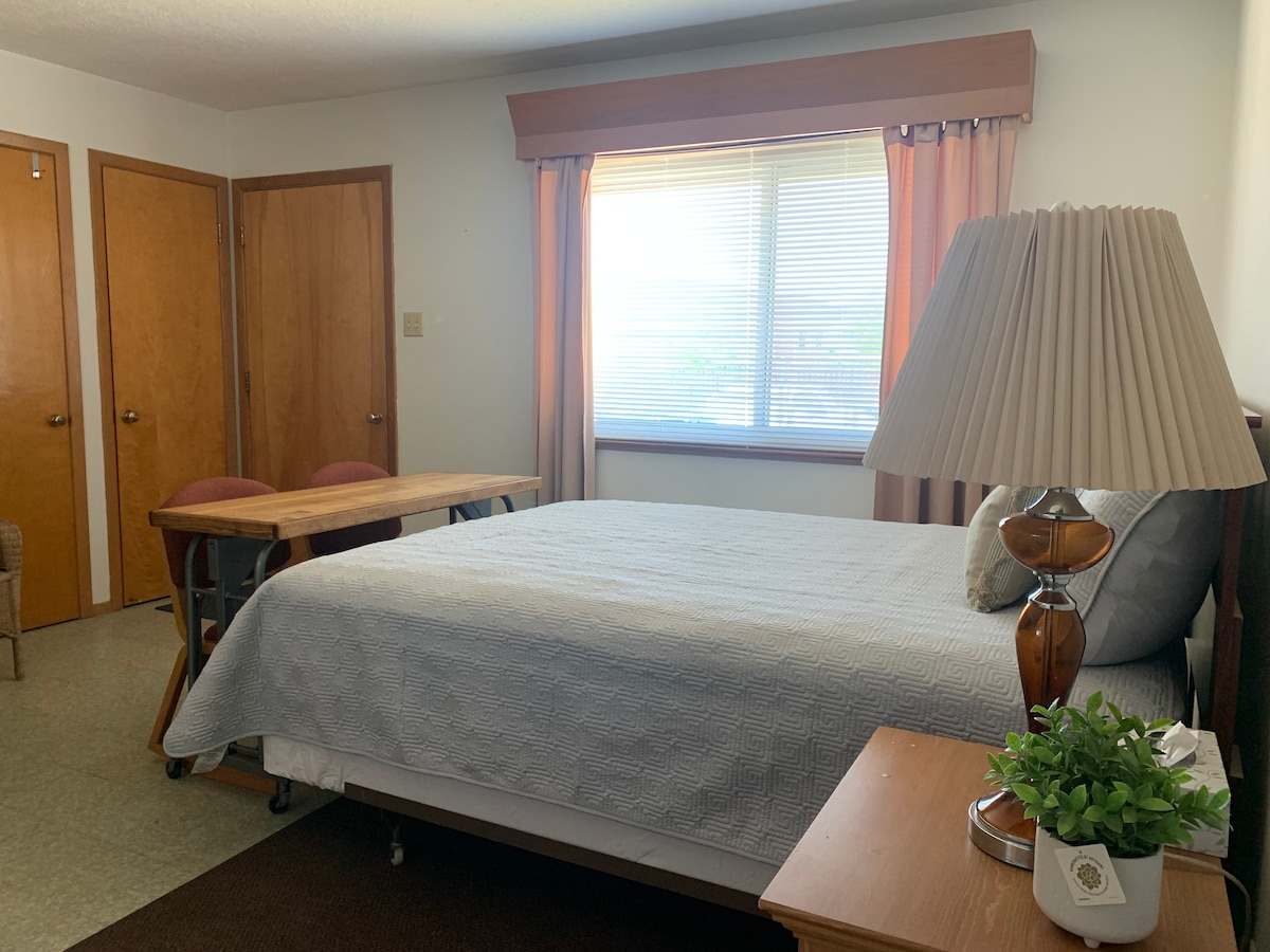1 bedroom -Queen bed, 1 bath, couch, kitchenette, courtyard. Brand new 55" smart TV, high speed Wi-Fi. Studio located in West El Paso close to I-10. The Kitchenette is equipped with refrigerator, microwave, convection toaster oven, coffee maker, double burner electric cooktop, blender, 2 slice toaster, cooking ware, plates, cups, glasses, silverware, etc. High chair and pack'n play are available upon request.