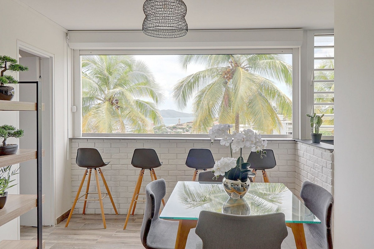 Step into a bright home and enjoy the breathtaking view of the bay of Fort-de-France! Located 5 minutes away from the island's main highway, this apartment will be your ideal base for a working or leisure stay or a combination of both. Designed with remote work in mind, the dedicated desk and high-speed internet will allow you to work efficiently. For a restful sleep, the cozy bedroom with air-conditioning will welcome you night...or day.