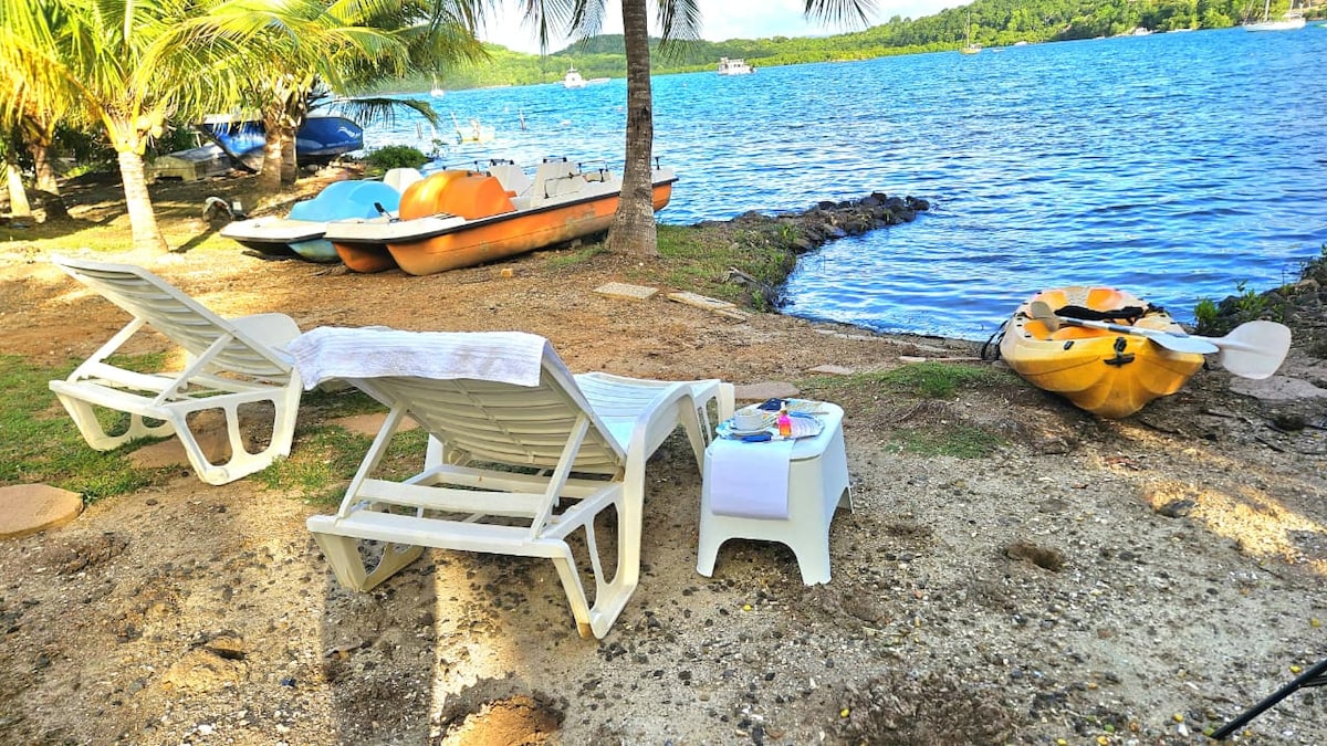 An exceptional place to enjoy Martinique! Magical views, direct access to the sea and the Black Diamond swimming pool ???? Our chic white studio boasts a beautiful terrace with outdoor kitchen, so you can live to the rhythm of the island, lulled by the lapping of the waves and the song of the birds. Magnificent beaches are all around, like Anse Noire, where you can swim with giant tortoises! And the many typical villages are an opportunity to discover Creole culture.