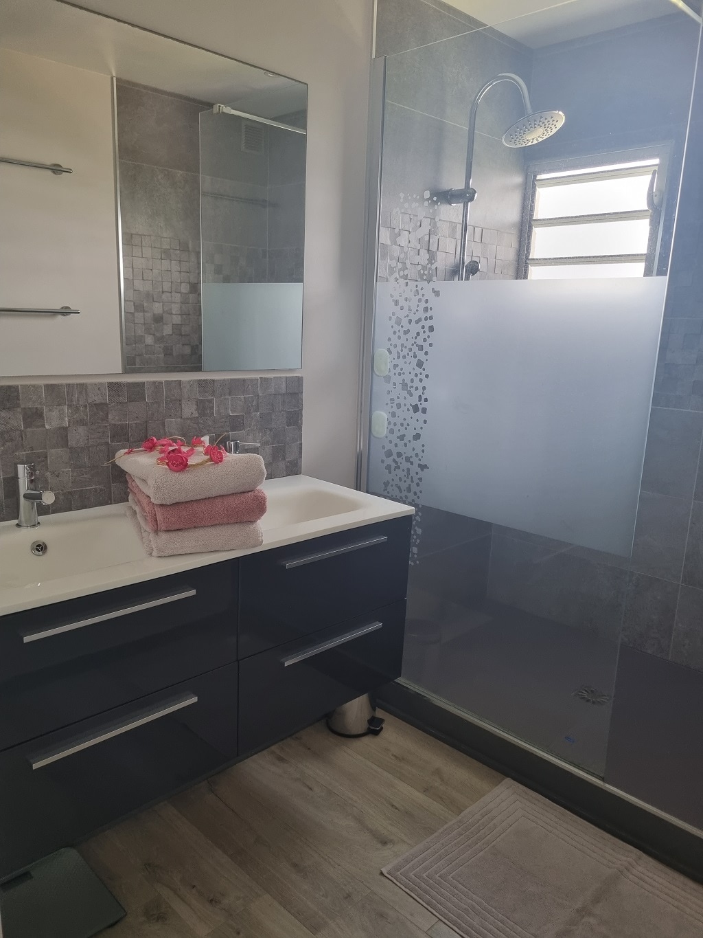 Cet appartement de 3 chambres est un grand logement neuf de 140 m2 décoré avec goût et disposant d'une grande terrasse de 30 m2 avec une très belle vue sur la mer des Caraïbes. Les trois chambres spacieuses ont chacune un très grand lit king size (180 cm). L'appartement dispose d'une très bonne connection wifi par fibre optique. Il est localisé dans le centre de la Martinique, idéalement situé aussi bien pour travailler que pour passer des vacances, proche des plages et des commerces.