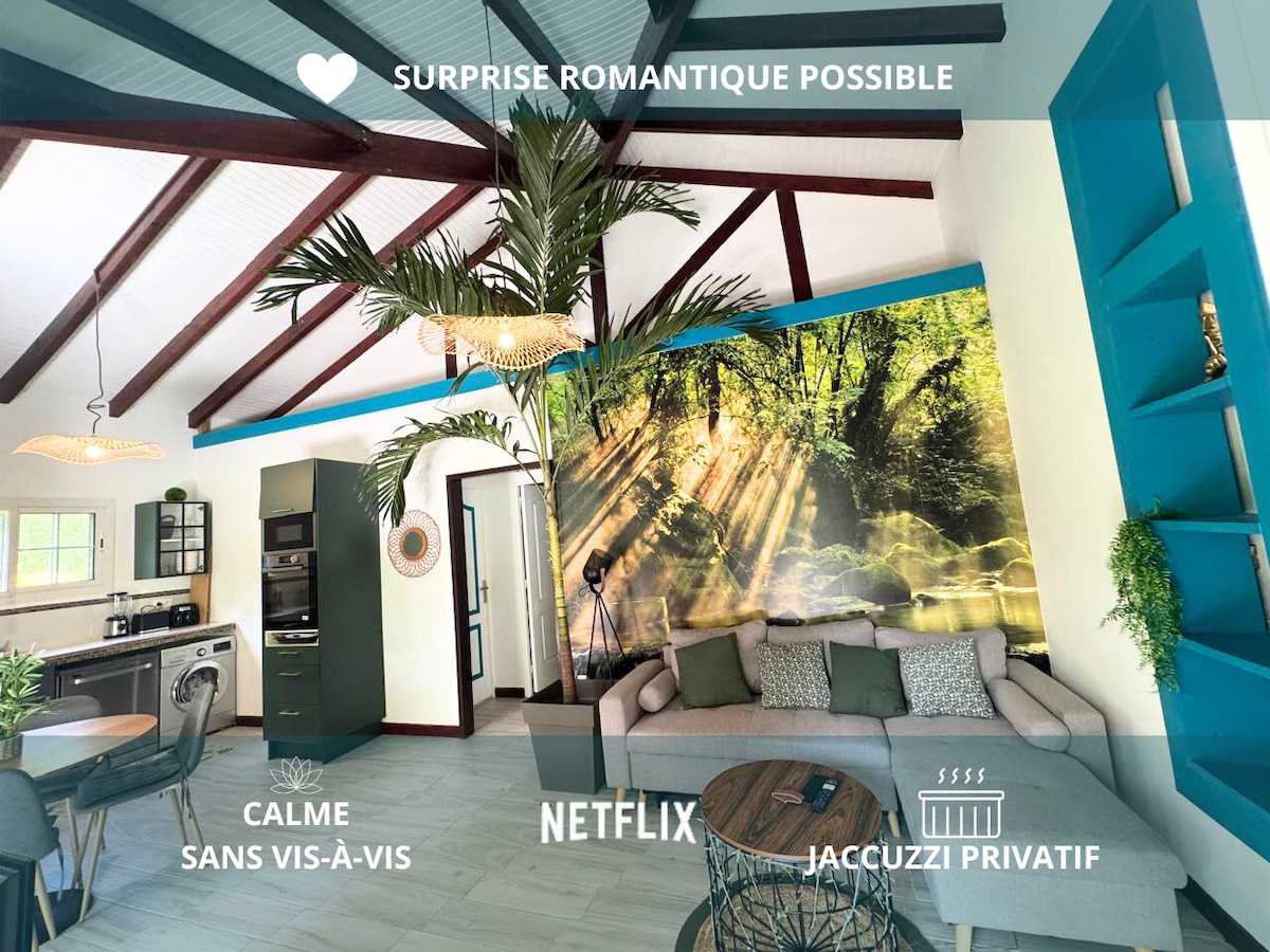 Joli bas de villa-F2 de standing avec jacuzzi et terrasse deck couverte privés, dans un écrin de verdure, idéal pour se ressourcer. Très bien situé au centre de l'île. A 5 min en voiture, les 1ères plages et toutes commodités (hypermarchés, boulangerie, restos, padel, plongée, PMT voile, tennis, cinéma..) Chambre climatisée avec un grand lit , moustiquaire, sdb moderne salon ; canapé convertible Cuisine très fonctionnelle. équipements ++ à disposition Idéal pour déplacements professionnels