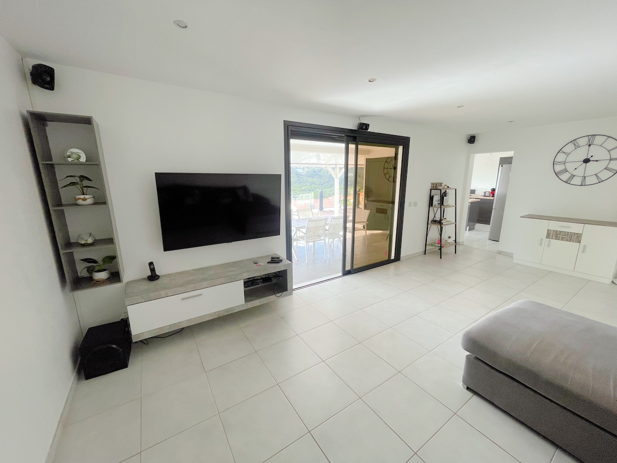 PAS DE FETE. F2 avec piscine , proche aéroport. Bas de villa entier pour Vacanciers et Déplacements Professionnels, wi-fi. A 10 mn de L'Aéroport, 15 mn du CHUM Pierre Zobda Quitman , 12 mn de Fort de France ,proche de Mangot Vulcin, l'IMS et des principales zones d'activités de l’Île. 1 centre commercial à 400m à pied, bureau de poste, boulangerie, GAB à 200m à pied . Vous bénéficiez du point de départ pour les plages et activités du sud et nord de l’Île. stationnement intérieur