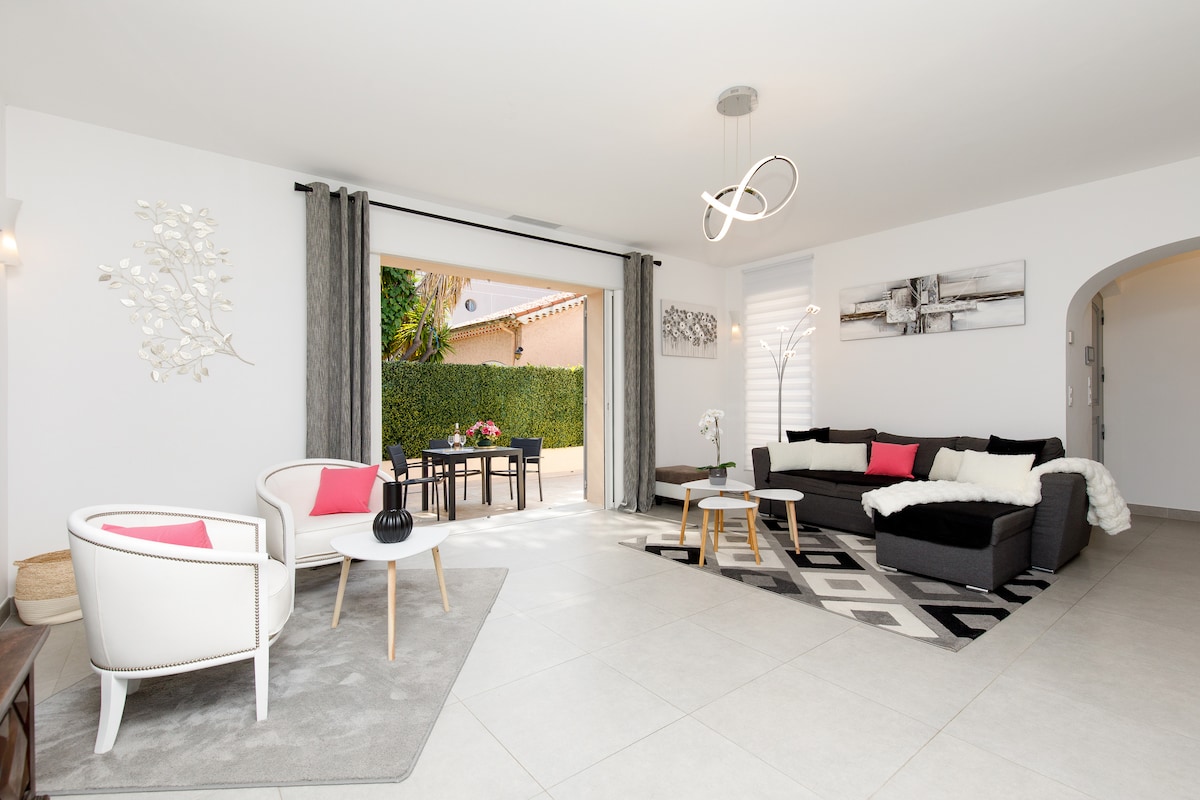 Spacious Apartment with Sea View – Cannes Stay in this bright and elegant 2-bedroom apartment, ideally located 2 km from the Palais des Festivals (6 minutes by bus), close to the Croisette and the beach. Enjoy a south-facing terrace with breathtaking sea views, perfect for relaxing. The apartment features two bedrooms, two bathrooms, a comfortable living space, and private parking. A perfect retreat to experience the charm of Cannes!