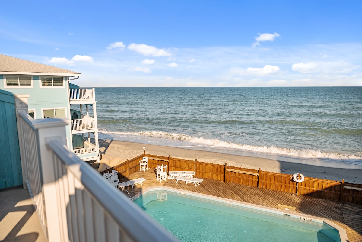 Charming 3 bed, 2 bath top level, ocean-front condo. Enjoy your coffee (or mimosas) on the oversized deck, soaking up the sun and taking in all that this private beach has to offer. For a closer look at the dolphins swimming by or the fisherman’s daily catch, you’re just a short walk to the sand from your door. Spend your days at the beach and your nights being soothed to sleep by the sound of the waves from your home. No matter the time of day or year, let Ocean Sounds calm you.
