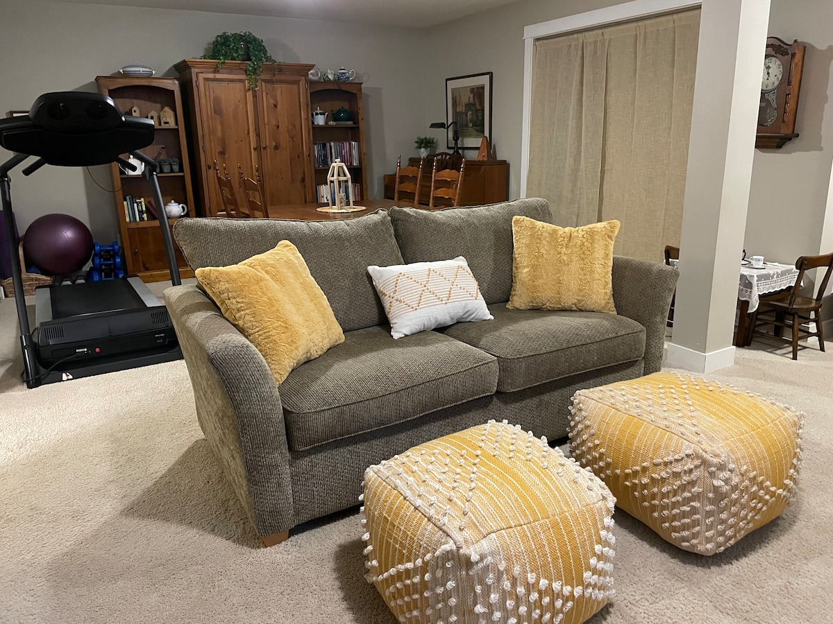 Basement suite is closed off from the rest of the house. Near Highway 1, walking distance to grocery store & shops, close to Fort Langley & Willowbrook. NO KITCHEN OR STOVE! However, suite includes small fridge & freezer, coffee maker, kettle, air fryer, dishes & utensils. Tea/Coffee provided. Suite comes with a double-sized pull-out couch, queen bed, and own bathroom with a walk-in shower. There is a living room w/ TV, DVD player, fireplace. No laundry, no dining table, no microwave