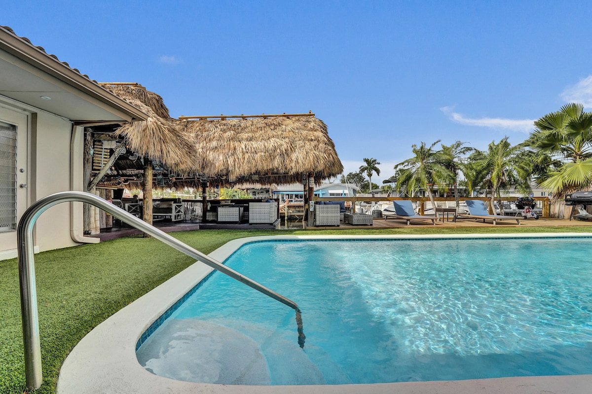 WATERFRONT HOME W/ HEATED POOL & FOUNTAIN, TIKI HUT W/BAR, KAYAKS & BIKES! DIRECT TO INTRACOASTAL W/LUXURY FINISHES & BEAUTIFULLY FURNISHED IN THE HEART OF POMPANO BEACH. THIS HOME INCLUDES 3 BEDROOMS & 2 BATHROOMS & A HEATED POOL! CLOSE TO BEACH, WATERSPORT ACTIVITIES, FINE DINING & UPSCALE SHOPPING. YOUR IDEAL FLORIDA BACKYARD GREAT TO GRILL & RELAX ON LOUNGE CHAIRS WHILE OVERLOOKING THE WATER. 2 KAYAKS INCLUDED!