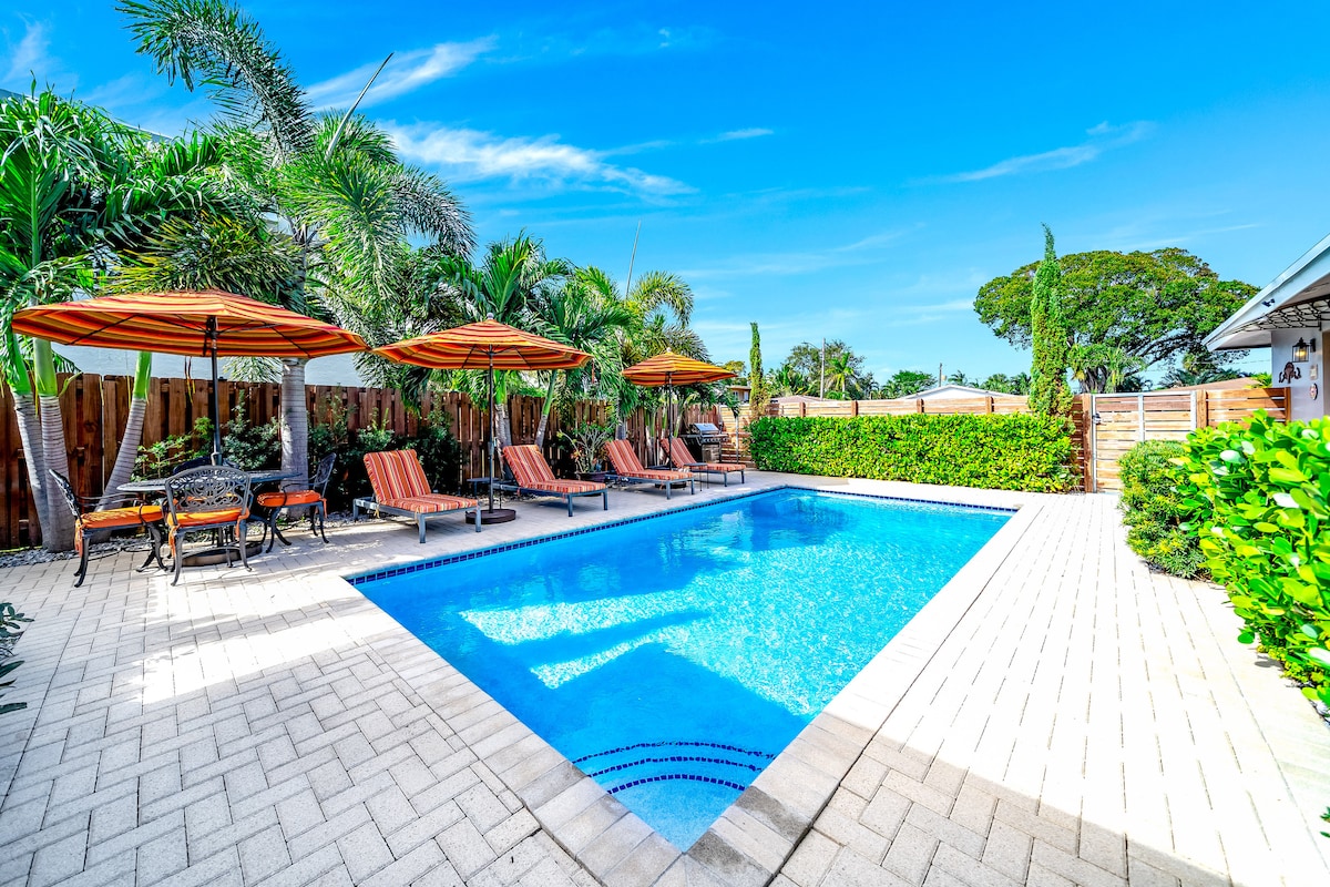 Welcome to CASA DÉJÀ VU A high-end space thoughtfully created just for you, in the heart of Fort Lauderdale. ✔️ 8 min to the beach | 10 min to Las Olas ✔️ Heated saltwater pool + outdoor hot tub ✔️ Garden with gazebo, BBQ & loungers ✔️ 2 beds (King + Queen), fast Wi-Fi ✔️ Fully equipped kitchen + Smart TVs ✔️ Free bikes & beach gear ✔️ Quiet and safe neighborhood ✔️ Free parking + 24/7 hosts