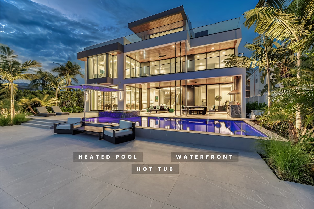 Discover an extraordinary escape in our meticulously designed waterfront villa, where modern elegance meets ultimate comfort. This stunning residence features soaring ceilings, exquisite furnishings, and a lavish pool surrounded by a sprawling backyard that offers breathtaking waterfront views. Immerse yourself in the unparalleled beauty and sophistication of this architectural masterpiece, and elevate your next getaway with a truly unforgettable experience.