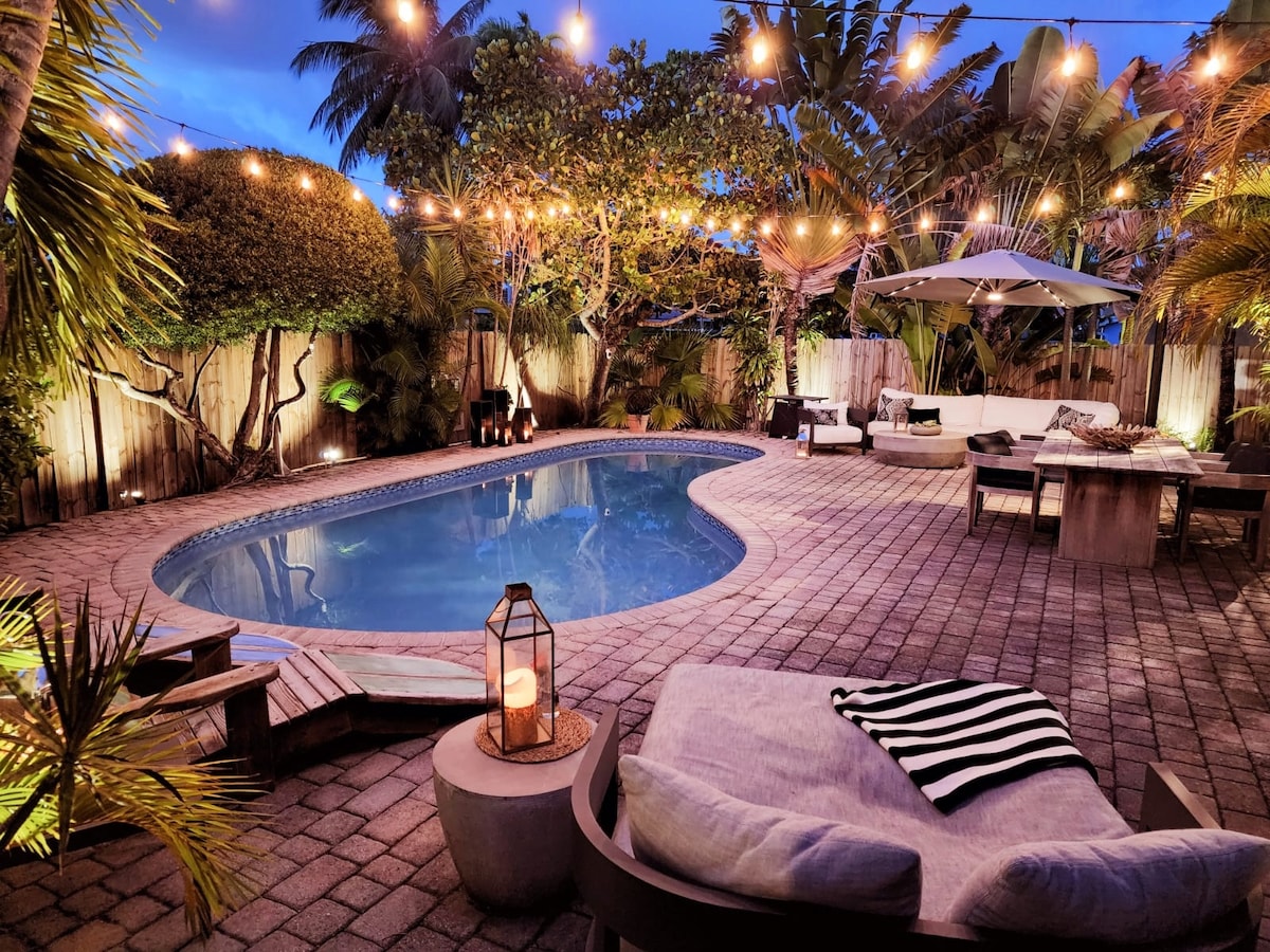 Welcome to CASA DÉJÀ VU A high-end space thoughtfully created just for you, in the heart of Fort Lauderdale. ✔️ 8 min to the beach | 10 min to Las Olas ✔️ Heated saltwater pool + outdoor hot tub ✔️ Garden with gazebo, BBQ & loungers ✔️ 2 beds (King + Queen), fast Wi-Fi ✔️ Fully equipped kitchen + Smart TVs ✔️ Free bikes & beach gear ✔️ Quiet and safe neighborhood ✔️ Free parking + 24/7 hosts