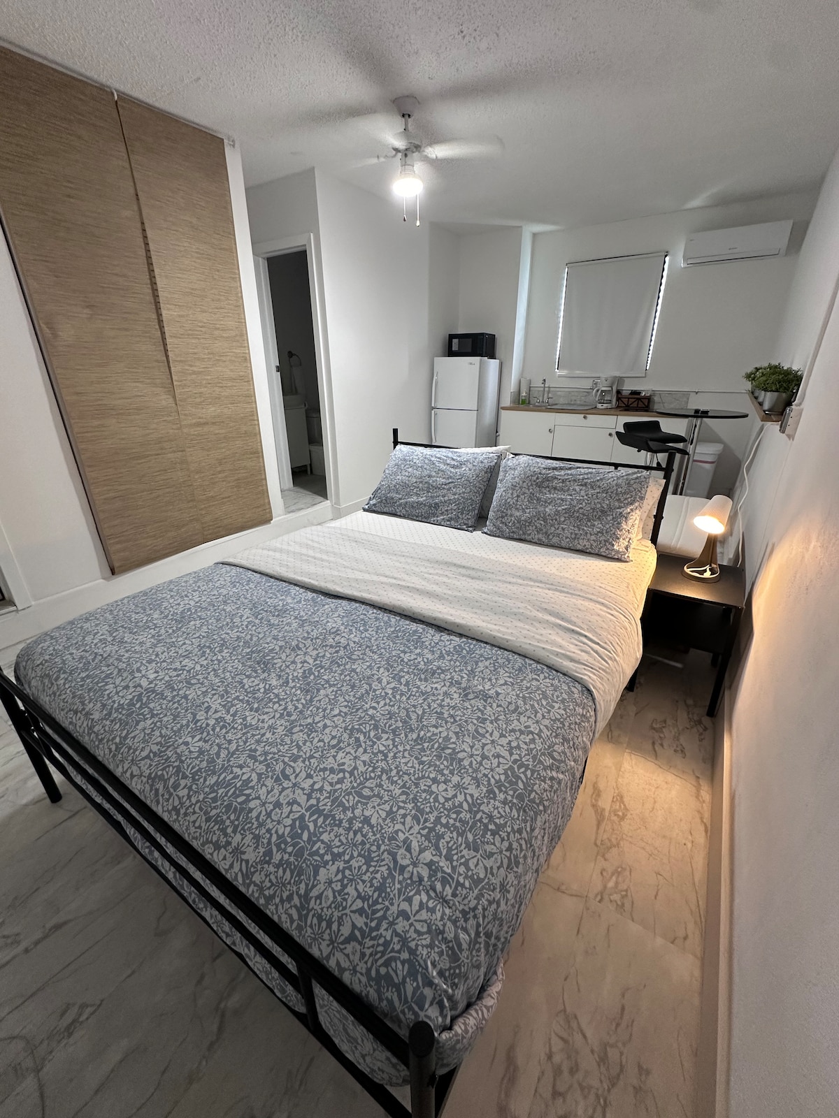 Private Cozy Studio with separate entrance from the main house. 1 Bathroom, Murphy Bed with attached closet and dresser space. Free Wifi, air conditioning, TV, with basic kitchen (dishes, utensils, coffee and tea) and bathroom needs ( sheets, towels, soap, toilet paper, dishes, etc). We offer a keyless entrance and will provide you with the code to enter the house upon check-in. Private entrance with 1 reserved parking.